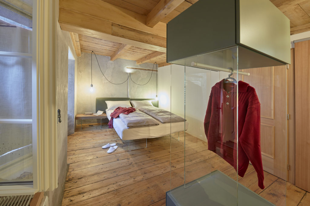 Camerata nel sottotetto di 35 m2, luminosa e confortevole; può ospitare da quattro a sei persone. Arredamento semplice, predisposto per piccoli gruppi senza grandi esigenze, che usufruiscono del proprio sacco a pelo; armadietti a disposizione nella camerata. Doccia e wc, scalda asciugamani e asciugacapelli, cassaforte e wi-fi.